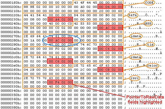 2) 해당 RVA를 파일의 정확한 영역으로 사용되어지는 raw offset 으로 변환해야 한다.