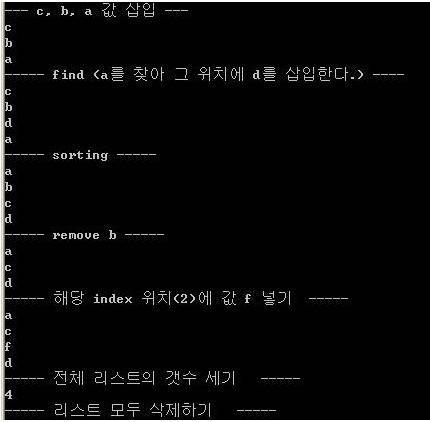 cout<< "----- find (a를 찾아 그 위치에 d를 삽입한다.) ----" << endl;